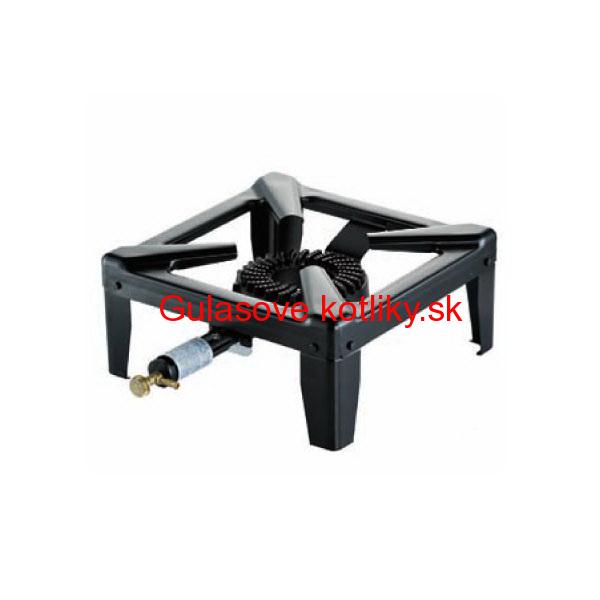 Jednohorákový (liatinový horák) varič na Propán-bután s plynulou reguláciou výkonu vhodný pre varenie s požiadavkou vysokého výkonu napríklad pod kotlíky, do kotlín, na gulášové akcie v prírode alebo v domácej "druhej kuchyni". Rám je vyrobený z prelisovaného oceľového plechu, štyri nožičky sú demontovateľné.