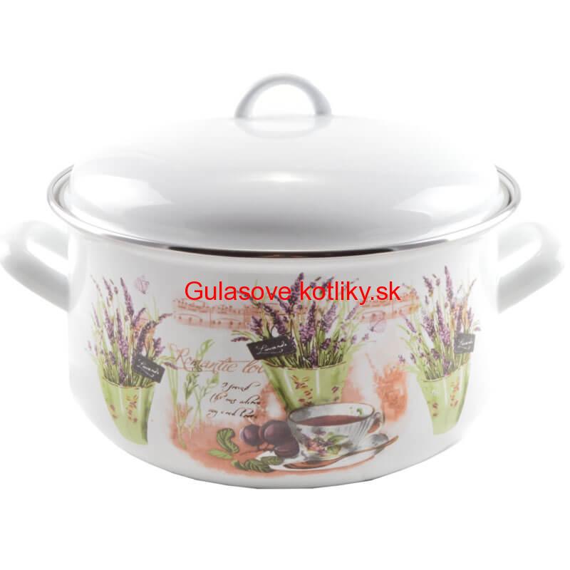 Kvalitný smaltovaný kastról s motívom levanduľa a pokrievkou.