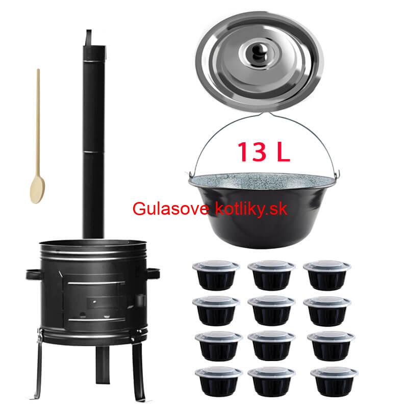 Kotlíková súprava na outdorové varenie guláša a rybích polievok v prírode, v záhrade alebo v otvorenej kuchyne, predovšetkým pre chalupárov, chatárov, do kempu a na táborenie. Pri použití koša v kotlíku na varené mäsa, jaterníc, klobás, zeleniny do polievky a konzerv.