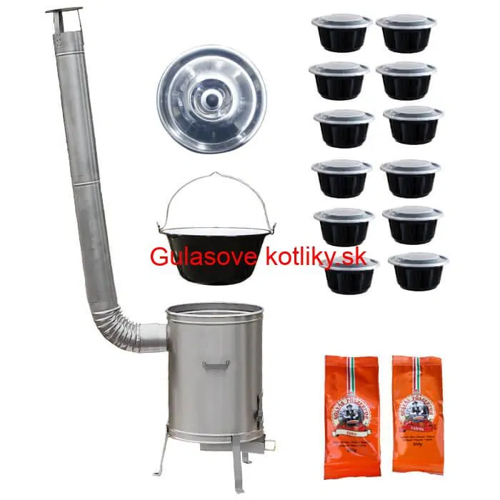 Kotlíková súprava na varenie gulášu a iných pochutín v záhrade, v prírode pre rodiny, rôzne spoločenské akcie a posedenia pri dobrom guláši.
