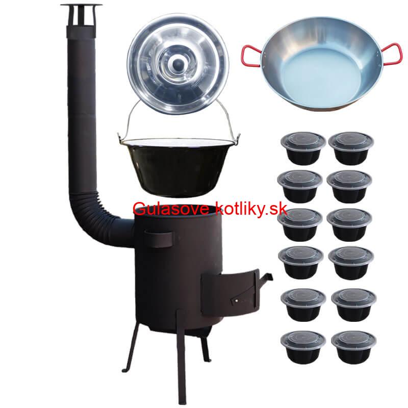 - Smaltovaný kotlík 22 L + Panvica PAELLA (WOK) 45 cm + misky 12 ks + žiaruvzdorná kotlina 42 PLUS 600 s roštom na popol 4 mm